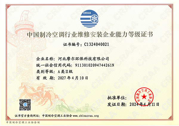 制冷空調維修能力等級A類2級